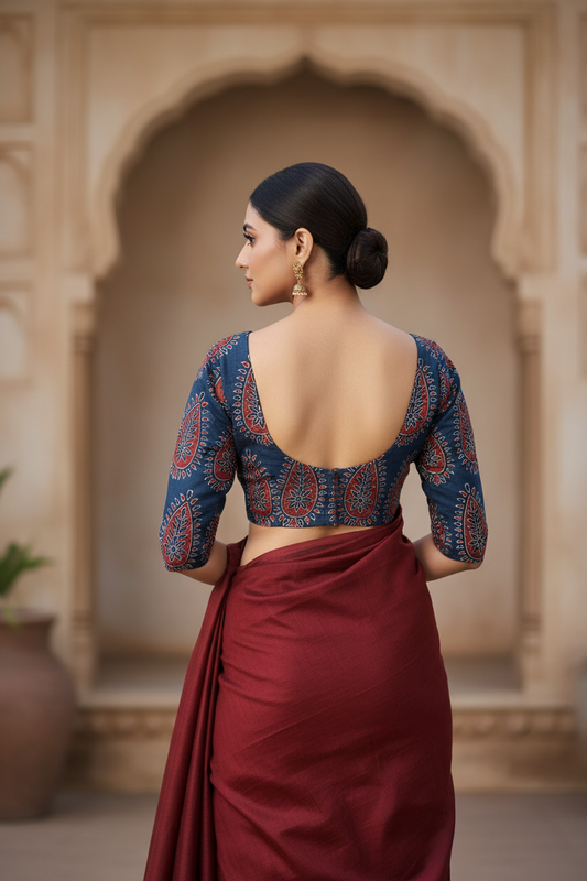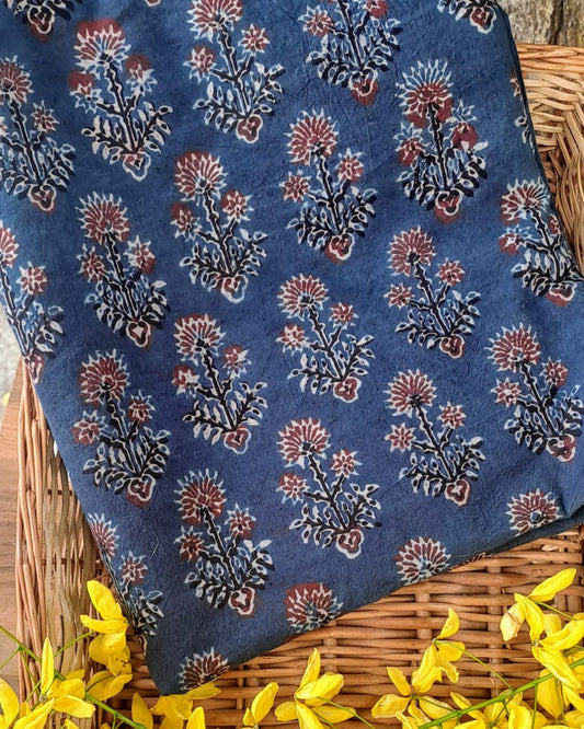 BLUE- AJRAKH COTTON RUNNING FABRIC
