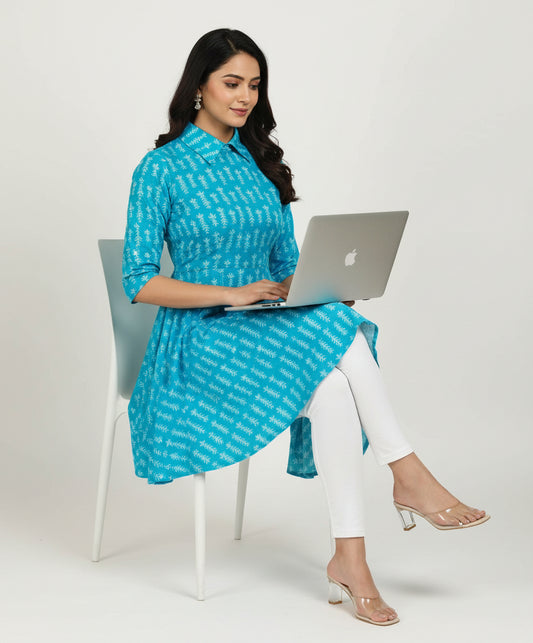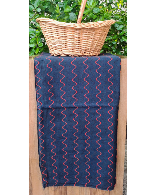 BLUE HANDBLOCKED COTTON PRECT 2.5M FABRIC