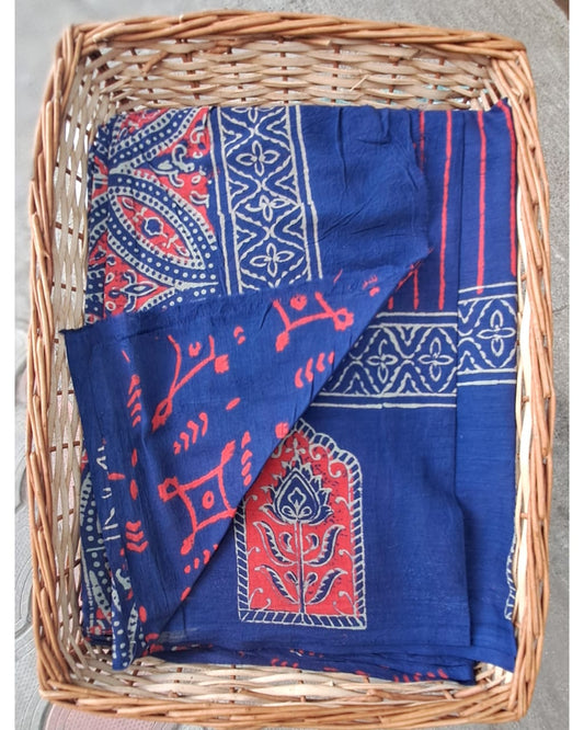 INDIGO HAND BLOCKED COTTON MUL MUL SAREE