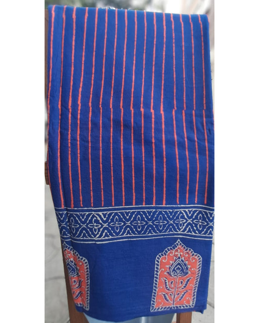 BLUE GEOMETRIC HANDBLOCK MULMUL SAREE