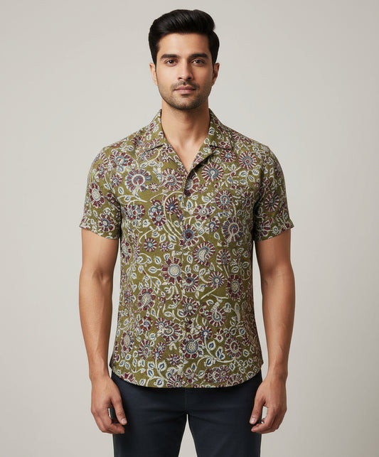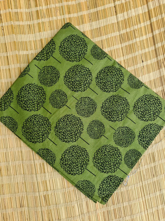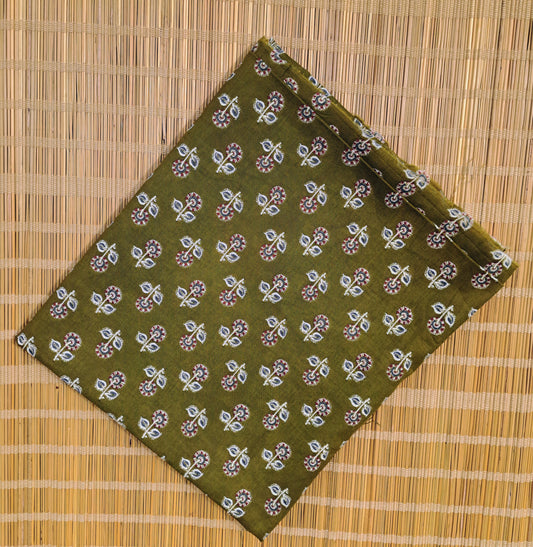 OLIVE GREEN HANDBLOCKED COTTON PRECUT 2.5 M FABRIC