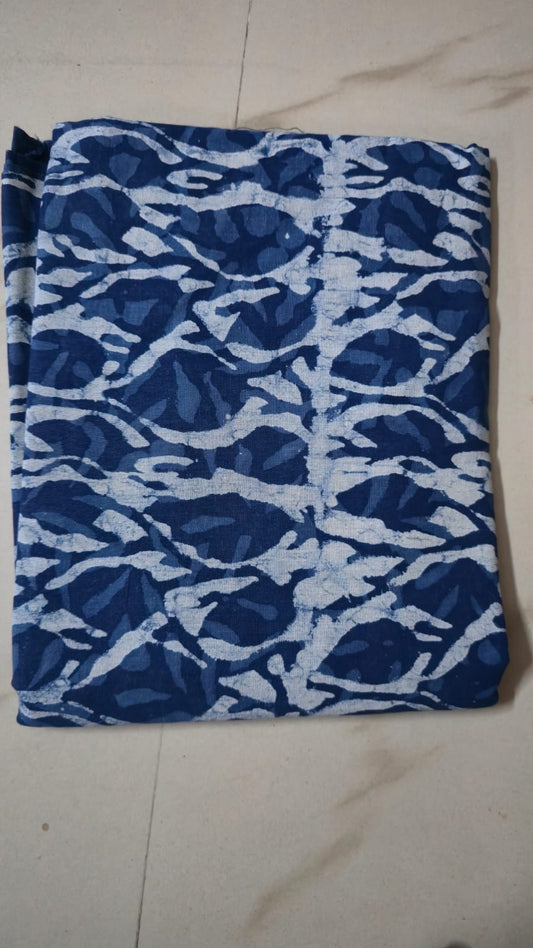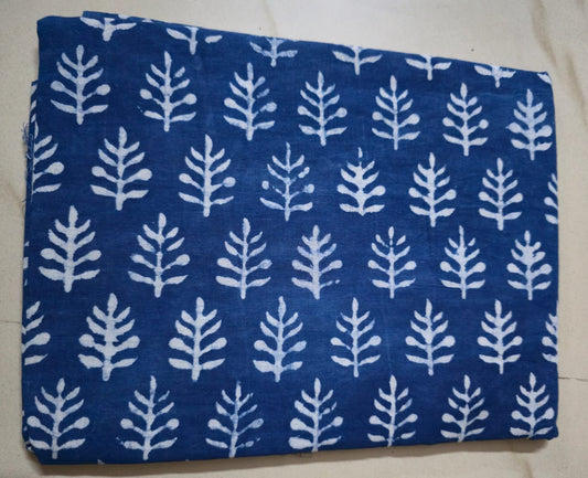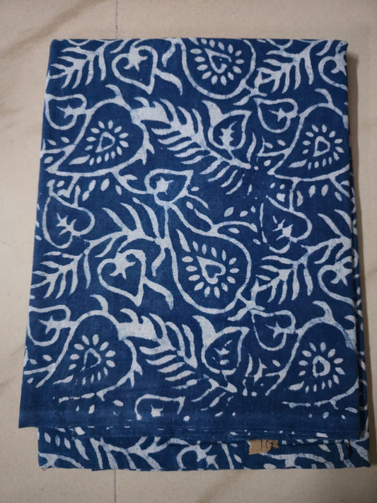 INDIGO HANDBLOCKED COTTON PRECUT 2.5M FABRIC