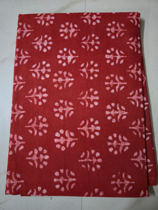 RED HANDBLOCKED COTTON PRECUT 2.5M FABRIC