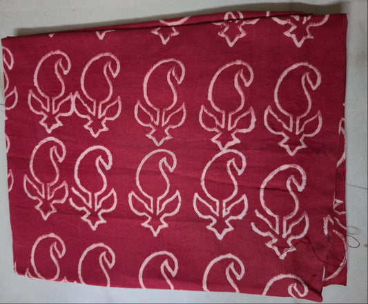 DARK PINK HANDBLOCKED COTTON PRECUT 2.5M FABRIC