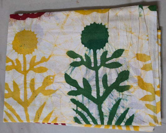 CREAM BATIK HANDBLOCKED COTTON PRECUT 2.5M FABRIC