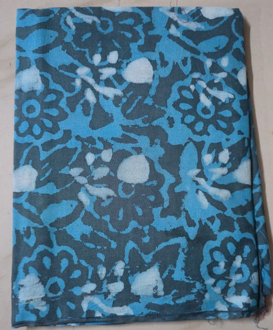 TURQUOISE BLUE HANDBLOCKED COTTON PRECUT 2.5M FABRIC