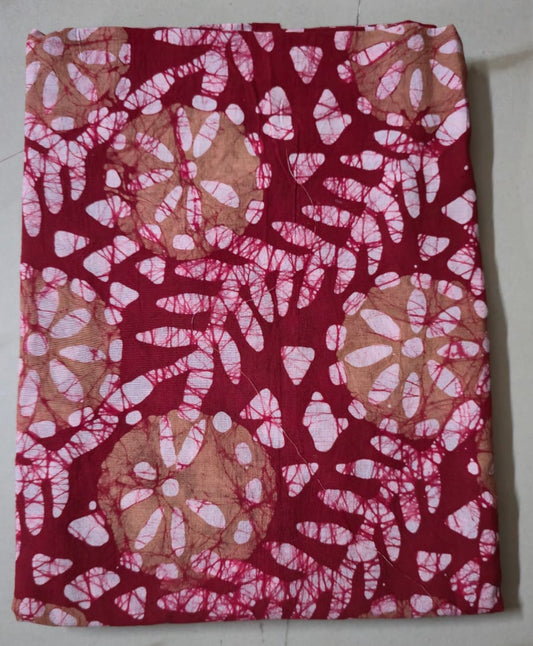 BATIK RED HANDBLOCKED COTTON PRECUT 2.5M FABRIC