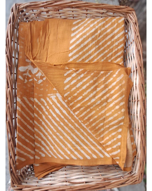 MUSTARD YELLOW HANDBLOCK MULMUL SAREE