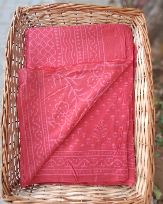 TOMATO RED COLOUR HANDBLOCK MULMUL SAREE