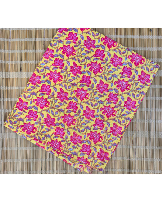 YELLOW & PINK HANDBLOCKED COTTON PRECUT 2.5M FABRIC