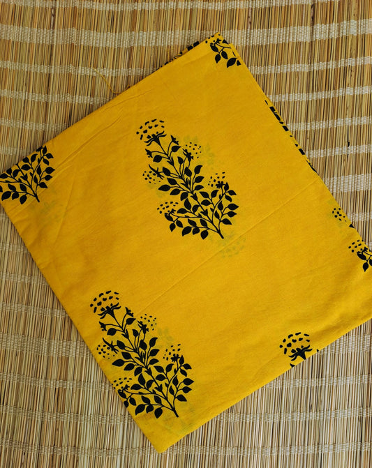 YELLOW HANDBLOCKED COTTON PRECUT 2.5 M FABRIC