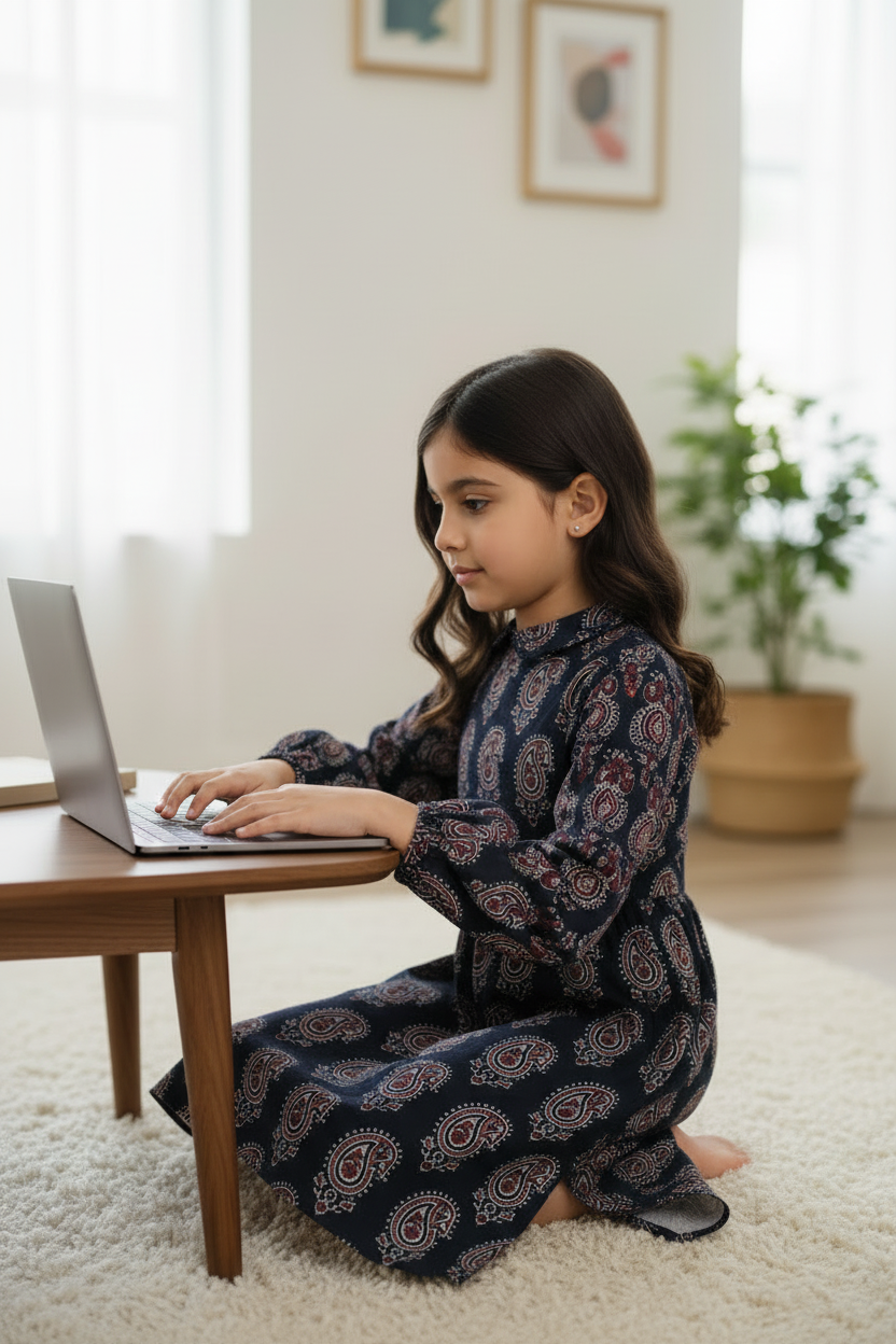 Naturally Dyed Ajrakh Cotton, Handblock printed for breathable comfort and timeless artisanal elegance.