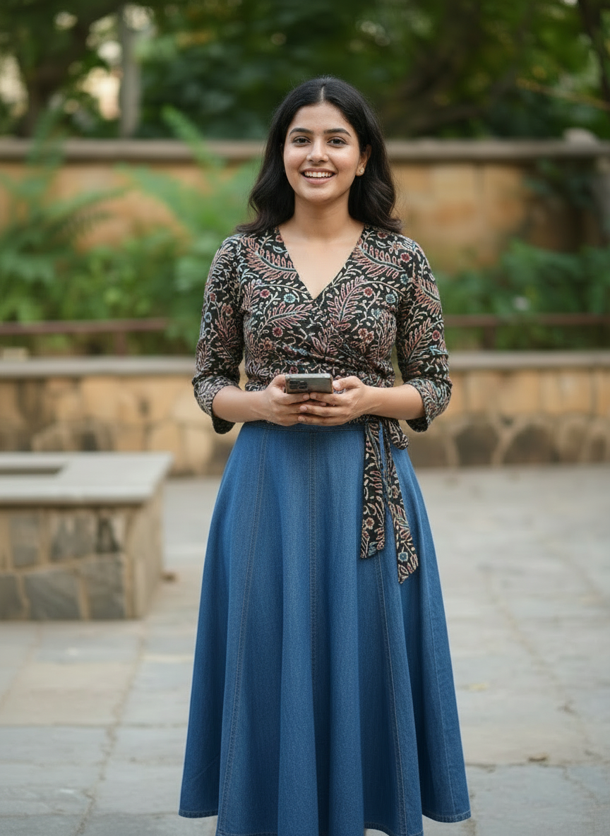 Naturally Dyed Ajrakh Cotton, Handblock printed for breathable comfort and timeless artisanal elegance.