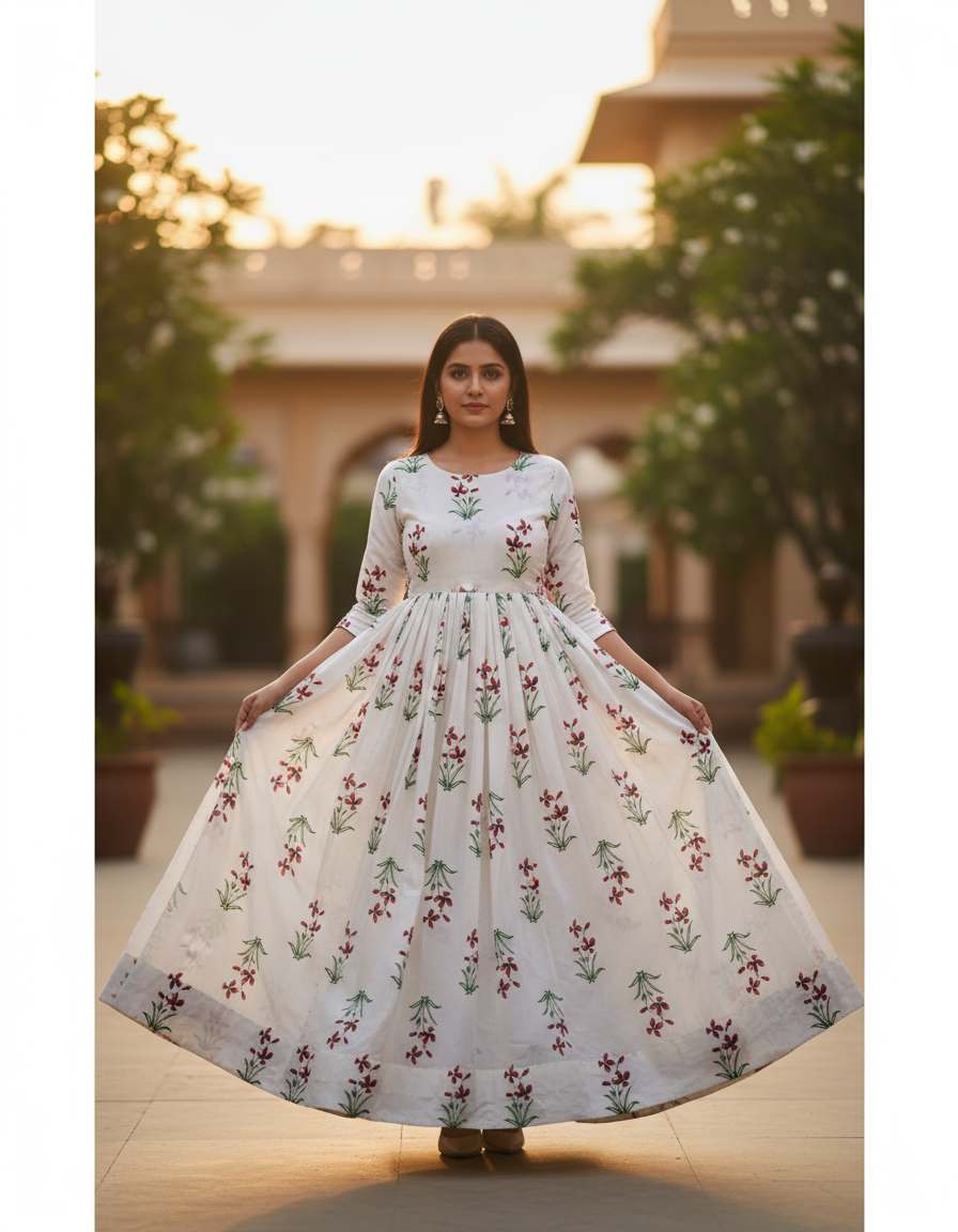 Experience the beauty of pure cotton precut fabric adorned with traditional hand-blocked patterns. This 2.5-meter fabric is soft, breathable, and eco-friendly, crafted by skilled artisans who keep ancient techniques alive. Made from 100% cotton, it ensures comfort throughout the day and is naturally dyed for safe, sustainable use.