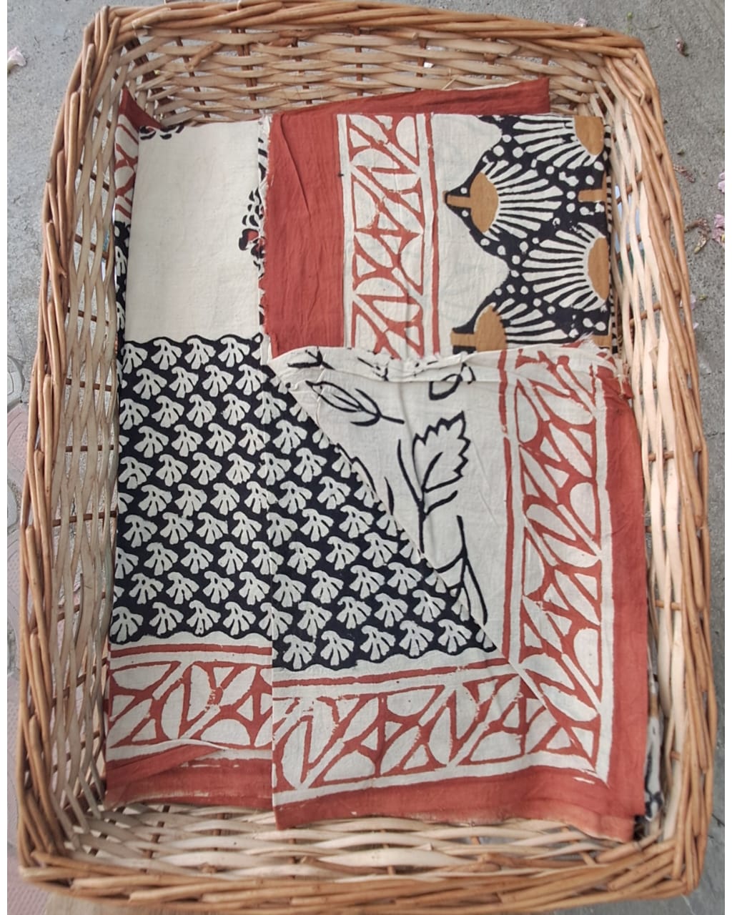 Crafted in comfort, dyed by nature — Organic handblock printed Mulmul cotton Saree with blouse.