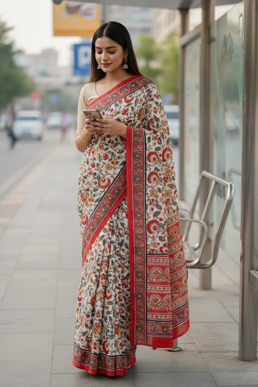 This elegant and versatile HANDBLOCK MULMUL SAREE is perfect for daily office wear, as well as parties, family gatherings, interviews, official meetings, and other occasions. With its timeless design, it is suitable for any function you have in mind.