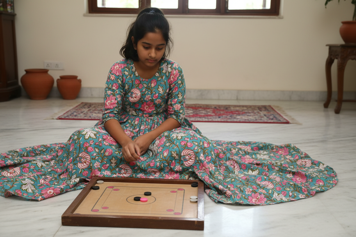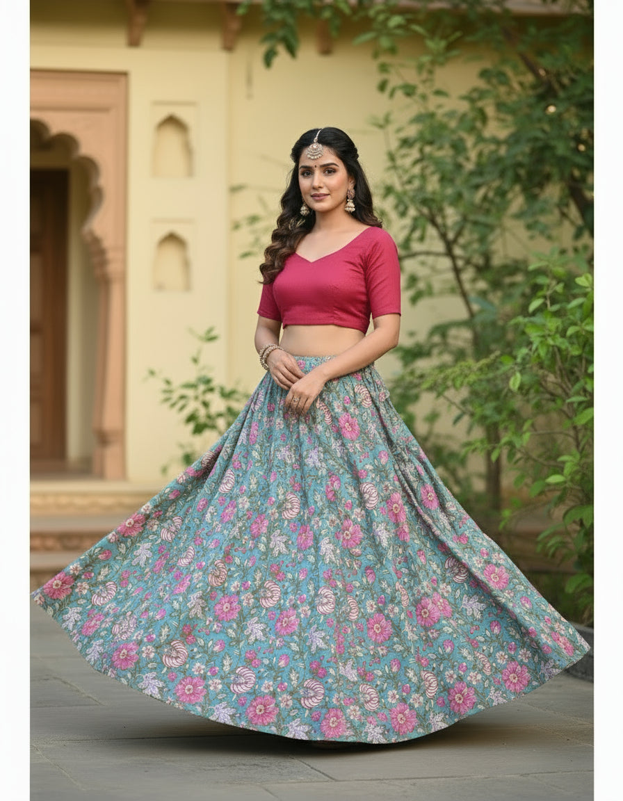 Experience the beauty of pure cotton precut fabric adorned with traditional Bagru, Indigo, and Dabu hand-blocked patterns. This 2.5-meter fabric is soft, breathable, and eco-friendly, crafted by skilled artisans who keep ancient techniques alive. Made from 100% cotton, it ensures comfort throughout the day and is naturally dyed for safe, sustainable use.
