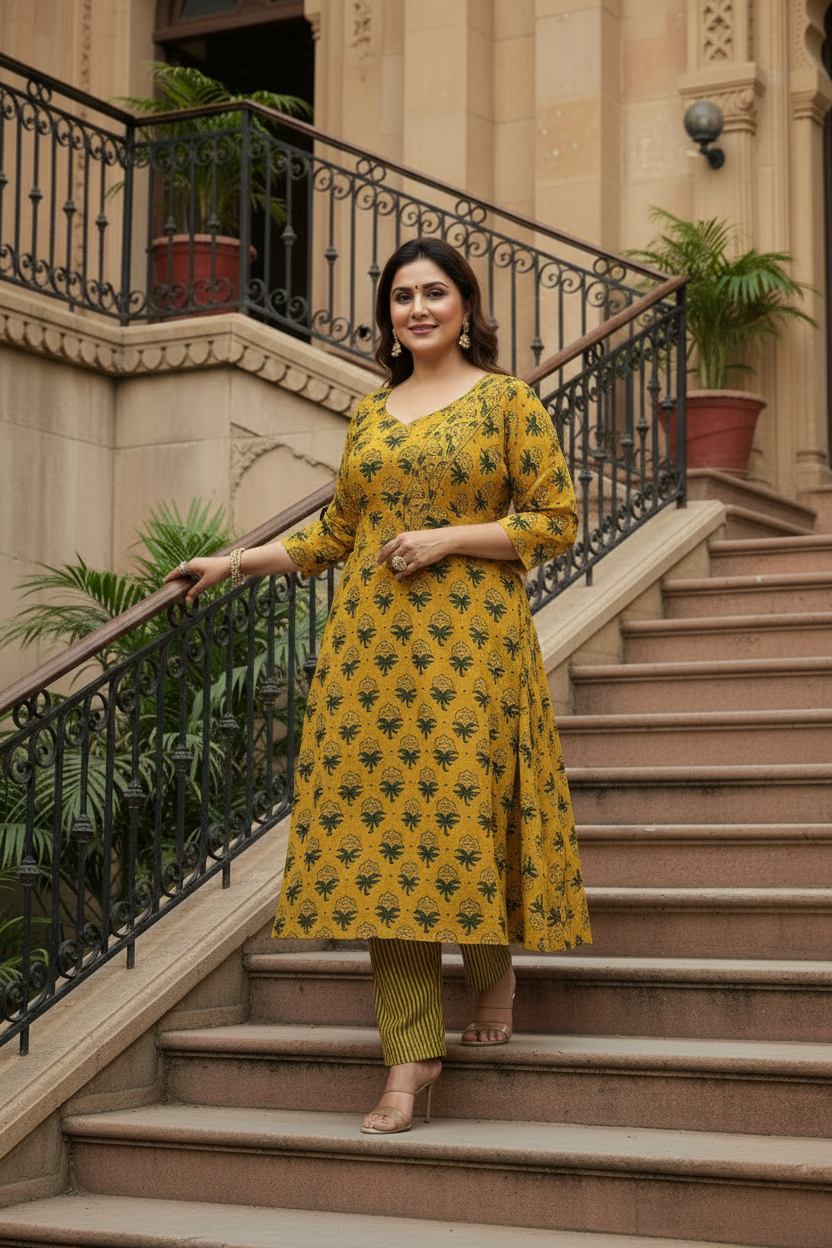 Naturally Dyed Ajrakh Cotton, Handblock printed for breathable comfort and timeless artisanal elegance.